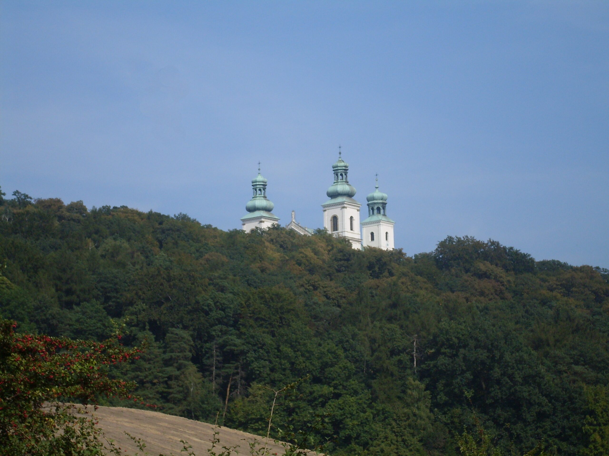 Swoim pięknem urzeka kościół pw. Wniebowzięcia Najświętszej Marii Panny poświęcony dwanaście lat po śmierci Wolskiego, w 1642 roku. Jego wspaniała, pałacowa fasada lśni bielą wapienia mieniącego się w promieniach popołudniowego słońca, wyłaniając się spośród otaczającego erem lasu. Wchodzimy przez pięknie zdobioną malowidłami furtę.