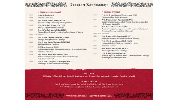 W dniach 16–17 czerwca 2025 roku w zabytkowych wnętrzach Collegium Minus Uniwersytetu im. Adama Mickiewicza w Poznaniu, a dokładniej w sali Senatu na drugim piętrze, odbędzie się Konferencja „Polska Bolesława Chrobrego” – wyjątkowe wydarzenie naukowe, poświęcone jednej z najważniejszych postaci w historii Polski. Spotkanie zgromadzi wybitnych badaczy specjalizujących się w dziejach średniowiecza, w szczególności wczesnopiastowskiej Polski, aby wspólnie spojrzeć na życie i panowanie pierwszego koronowanego władcy naszego kraju.
