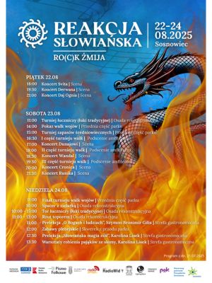 W dniach 22–24 sierpnia 2025 roku Park Miejski im. Jacka Kuronia w Sosnowcu przemieni się w tętniącą życiem przestrzeń, w której przeszłość i teraźniejszość spotkają się w wyjątkowym dialogu. Wszystko za sprawą trzeciej edycji festiwalu Reakcja Słowiańska 2025 – wydarzenia, które z roku na rok przyciąga coraz szersze grono oddanych uczestników i sympatyków.